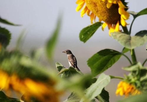 疯鸟与向日葵的邂逅,仿佛是一场美丽的邂逅。疯鸟在向日葵的花盘上停留,欣赏着那一片金黄;而向日葵则将阳光洒在疯鸟的羽毛上,为它带来一丝清凉。这一刻,它们仿佛成为了彼此的知己,共同度过了一个美好的午后。